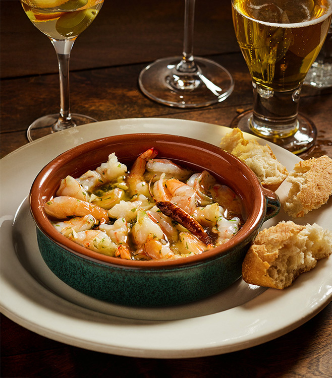 Each of these moments contributes to a sense of connection and well-being.In the end, food is one of the most accessible ways to bring people together.It invites us to slow down, to share, and to be presentsomething that becomes increasingly valuable at every stage of life.Recipe PreviewLa Casa del Abuelos Gambas al Ajillo (Garlic Shrimp)Feeds 2 for Tapas6 to 7 ounces (about 180g) medium or large shell-on shrimp, preferably Atlantic whiteCoarse sea salt4 to 5 medium very fresh garlic cloves3 to 4 generous pinches (1 to 1 1/2 teaspoons) finely chopped flat-leaf parsley, leaves onlyAbout 2/3 cup (165ml) extra-virgin olive oil (Arbequina)1 dried whole cayenne pepper or chile de rbolFreshly ground black pepperTO SERVE3 to 4 panecillo tetia (Spanish rolls), or ciabattaPrep:Put a small (roughly 6-inch/15cm) cazuela or similar terra-cotta cooking dish on the stove; if the cazuela is new, put a heat diffuser beneath it (see Tips).Have hot pads or kitchen towels near the stove.Peel and devein the shrimp, and rinse under cold water.