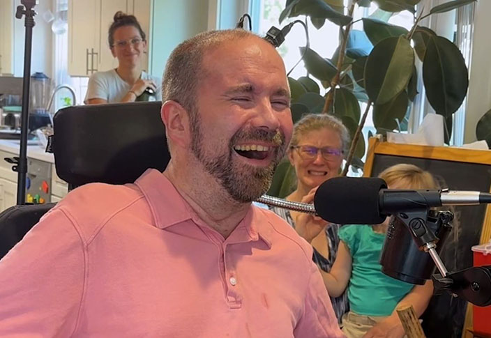 Our objective was to develop a system that empowered someone to be understood whenever they wanted to speak.Harrell used the system in both prompted and spontaneous conversational settings.In both cases, speech decoding happened in real time, with continuous system updates to keep it working accurately.The decoded words were shown on a screen.Amazingly, they were read aloud in a voice that sounded like Harrells before he had ALS.