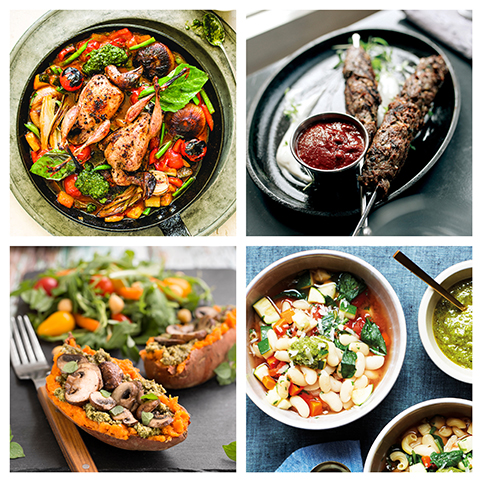 The recipes call for fresh produce as well as good quality canned and frozen foods, whole grains and time-saving off-the-shelf prepared sauces.If you need help in planning menus, the author offers ideas on how to create a complete meals and gives tips on what dishes go well together.One of the many recipes we like is:Pesto & Mushroom-Stuffed Sweet PotatoesMakes 3 servings3 large sweet potatoes8 ounces mushrooms (cremini or white), cleaned, stemmed, and sliced1 (6- to 8-ounce) jar vegan pestoMicrowave the sweet potatoes until soft but not collapsed.Allow 3 minutes per sweet potato; test to see if it can be easily pierced, then add another minute or 2 as needed.Meanwhile, cook the mushrooms in a small skillet with a little water until wilted, about 5 minutes.